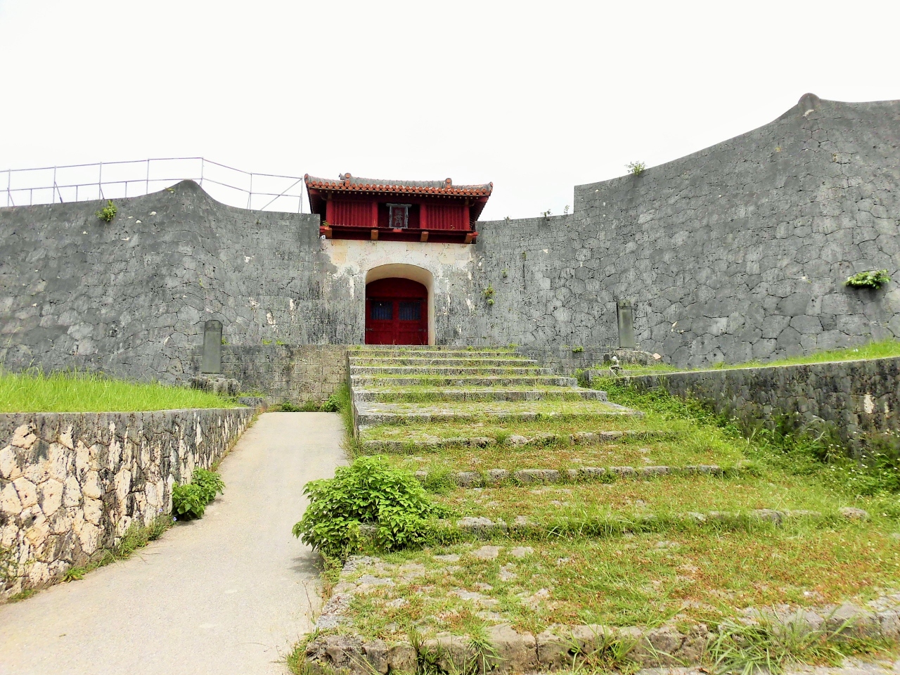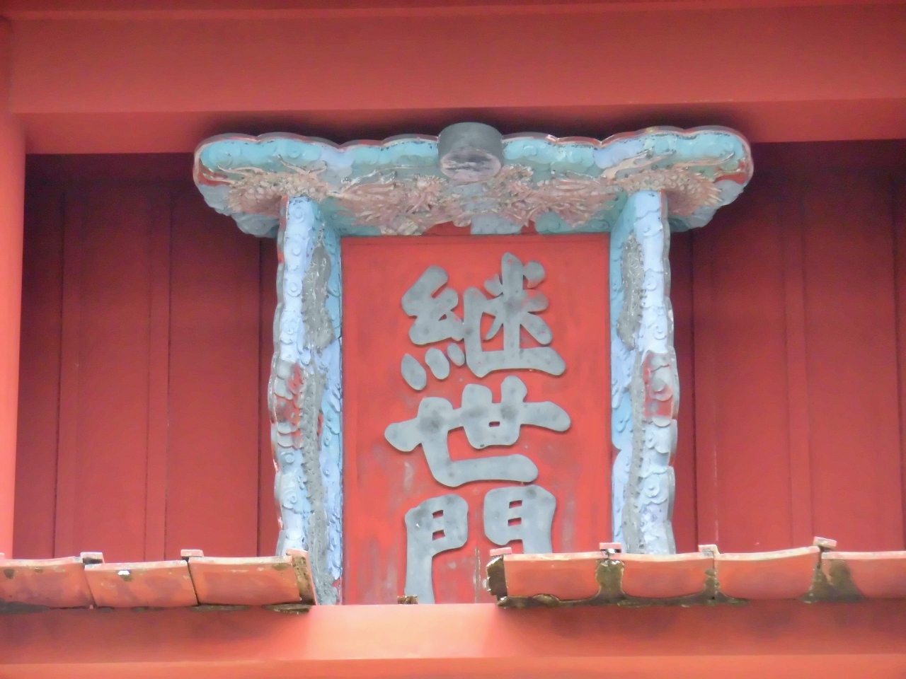 首里城正殿のある「御庭」へ入る最後の門で、ここで入場券をもぎられます。3つの門がありますが、中央は国王など身分の高い人だけが通れる門で、それ以外の役人は両側の門から入城していました。今は全員中央から入ります。
