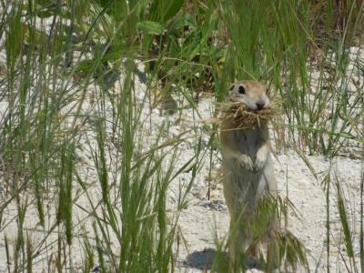 訪ねたのは今年6月2日。草むらをすばしっこく走りまわる小動物を発見!しました。ネズミではないしリスともちがう…。数枚撮った写真の2枚にバッチリ撮れていましたので、帰ってから色々調べて「プレーリードッグではないか」と。