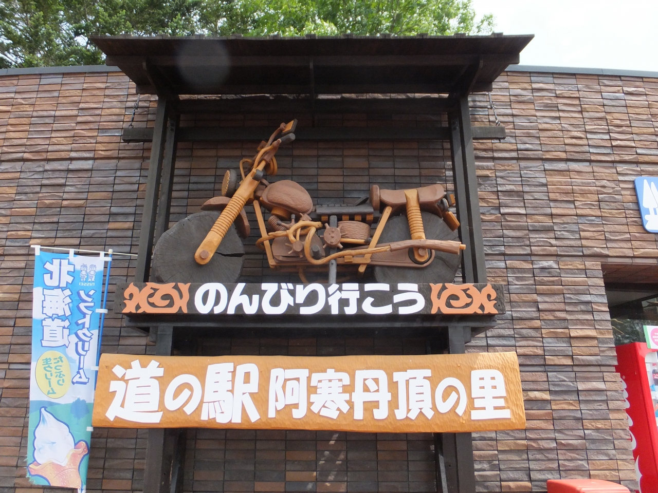 道の駅の真ん前には木製のバイクのアートが飾ってあります。