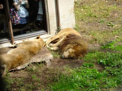 もうじゅう館のネコ科生物たちは夜行性なのでぐっすり寝てました。