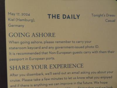 - 27泊 N Statendam★18★Friday, May 17 Kiel, Germany