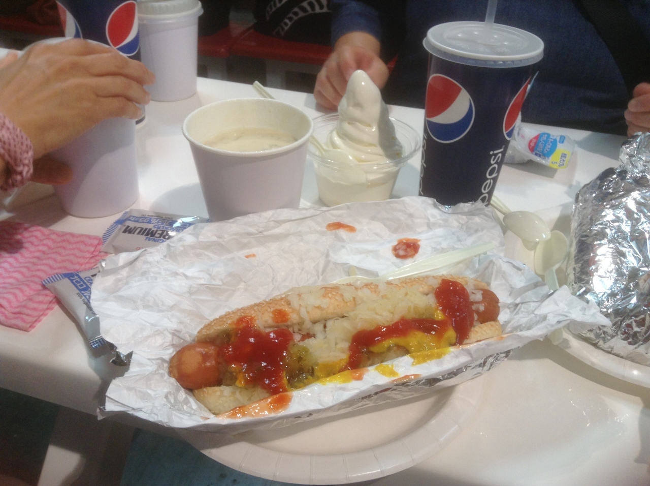 買い物終了後のホットドッグとクラムチャウダー美味しかったです。- 旅行時期