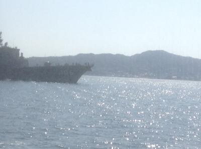 松山港から広島へ船で瀬戸内海を見たくて、穏やかでキラキラ眩しい光景と呉近くの造船や、遠くに自衛隊の船など見えて良かったデス