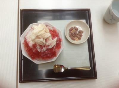 温泉の後のかき氷、本物のイチゴが入っていて甘くなく後味さっぱり、口の中でフォワかな