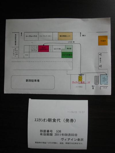 朝食施設はホテルには無く駅に隣接した飲食街の指定された二つのお店から選択。