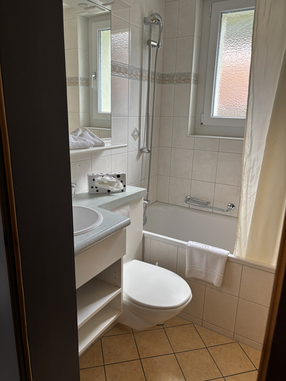 このホテルの利点は、グリンデルワルト駅から見える近さと、全室バスタブ付きという事。