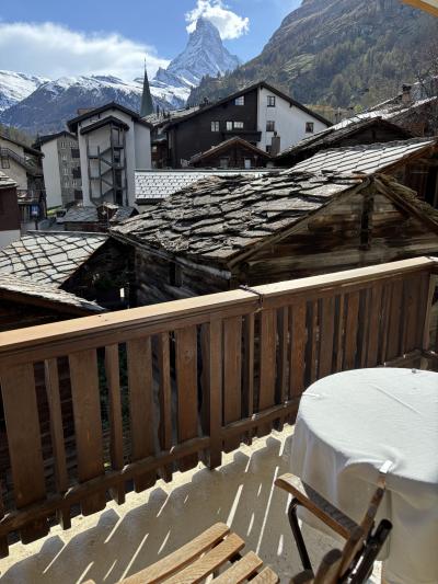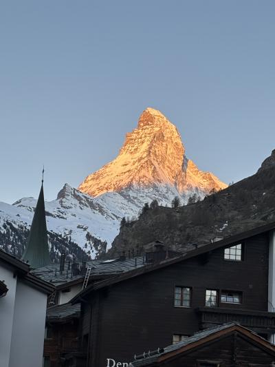 ベランダは比較的広めでテーブル・イスがあり、マッタホルンも近くのお宅の屋根越しではありますが、見えて大満足でした。