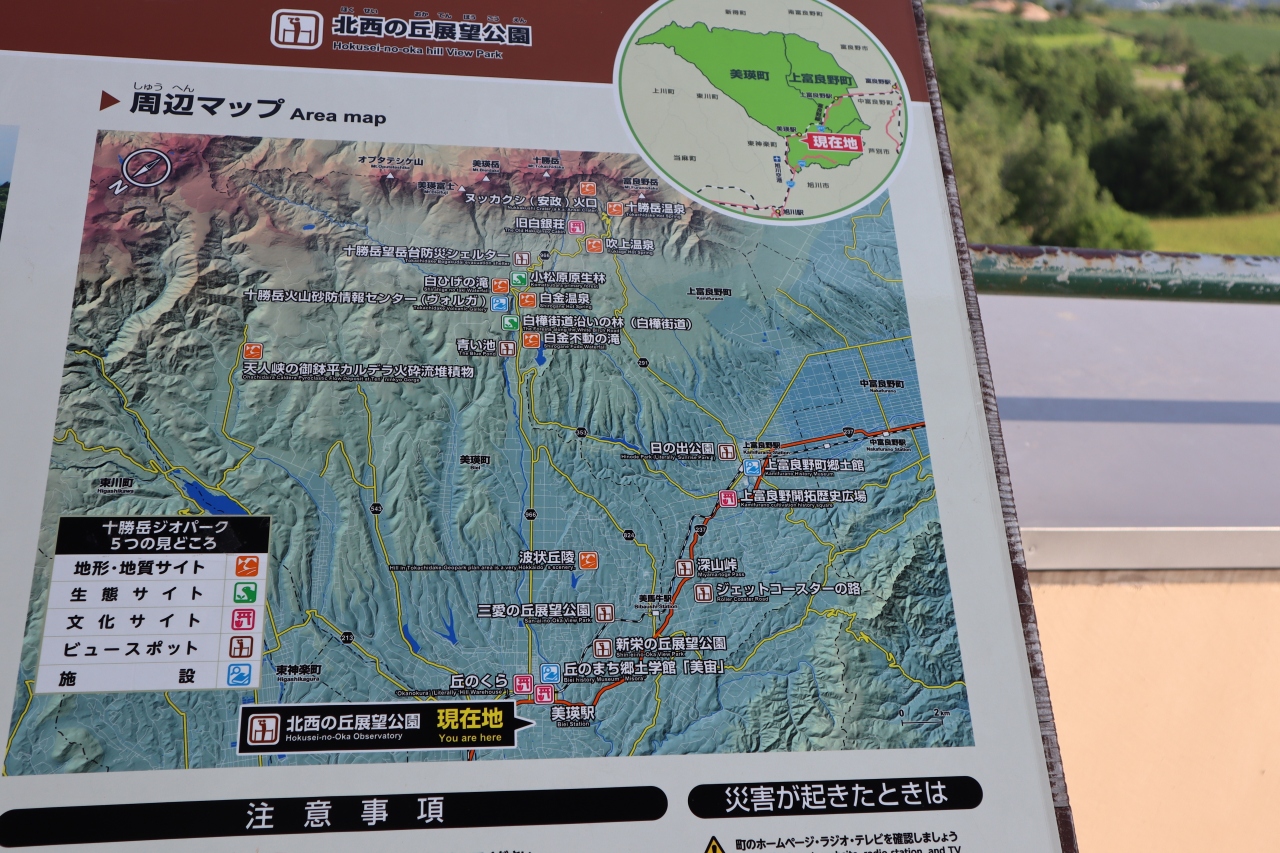 別に何もありません。でも、この建物に上って十勝連峰を見るだけでも良いのですが、周りにある説明版を見ると、美瑛の丘の成り立ちが、詳しく説明されています。