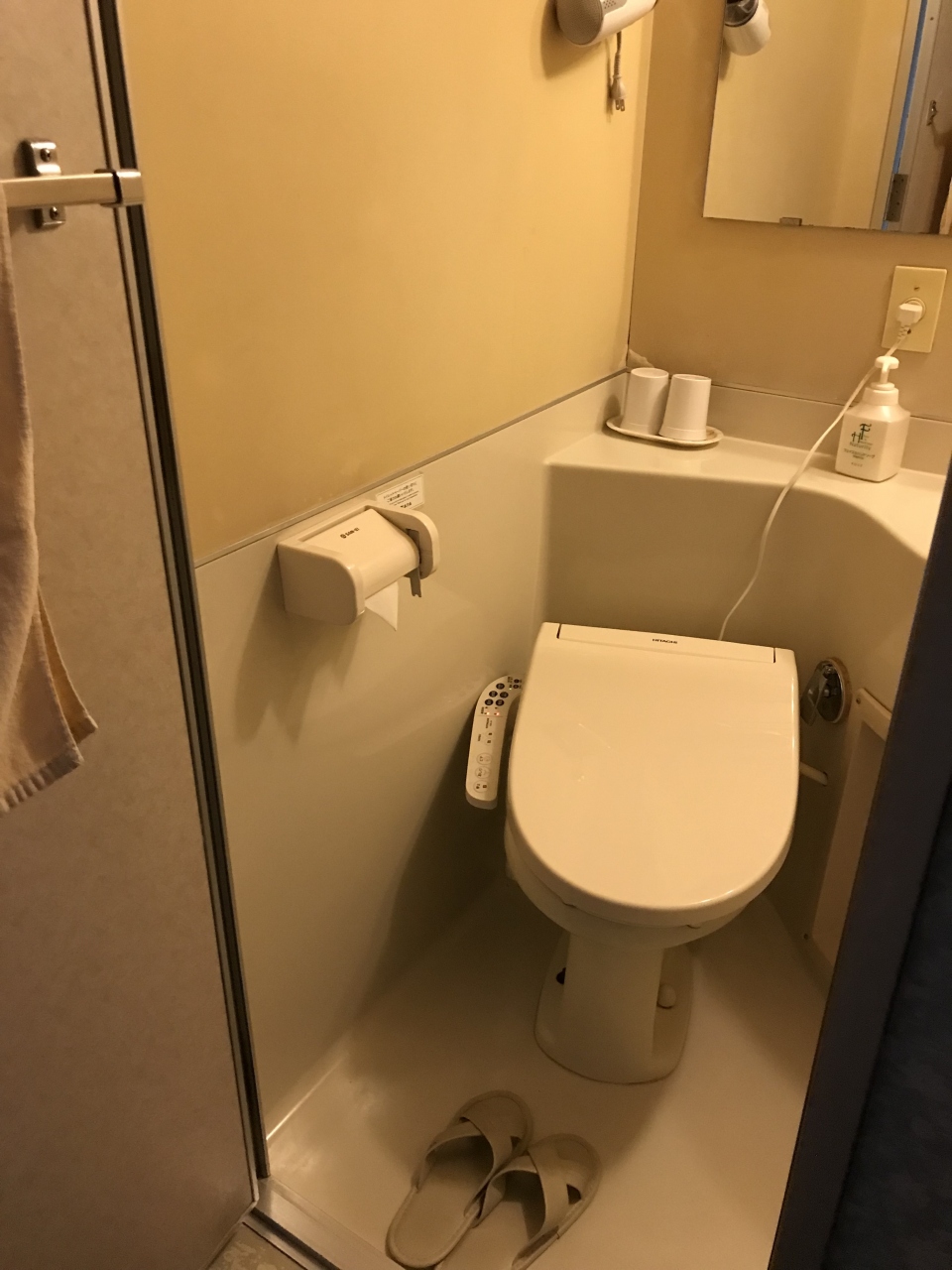 部屋は旧館を選択したので期待はしておりませんし、納得なのですがトイレの狭さには驚きました。ビジホのコンパクトさというより、無理やり備え付けたられたという感じでした。ホテル選びでトイレの造作まで見れませんので、これだけは想定外でした。