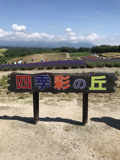 青い池からの移動でしたが、カーナビの案内が本当かしら?と思うほど、何もない道を進んで行きましたら、突然「四季彩の丘」の案内が目に入り良かった~と思いました。