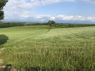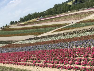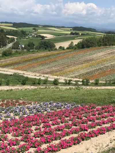 お花畑の向こうに広がる美瑛のパッチワークの丘も、少しですが遠望できましたので、よかったです。まさに北海道の雄大さを感じました。