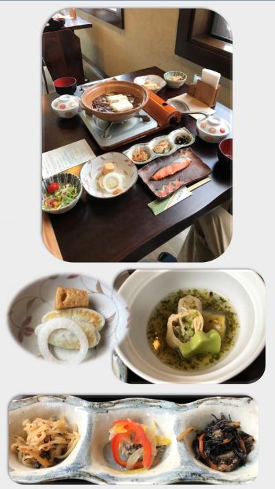 朝食もバイキングで無くて、必要限度の献立だったのと、府糊の湯豆腐が身体に良いな~と思いました。勿論、別テーブルに好みの卵・海苔などありました。
