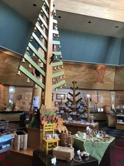 三角形の建物の中に入ったら、木工製品がいっぱいで楽しめました
