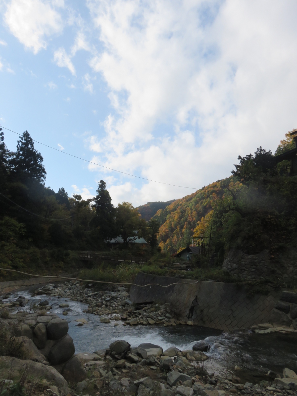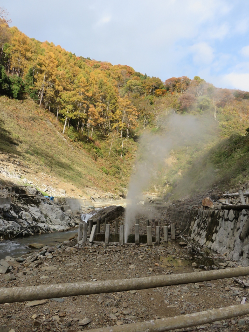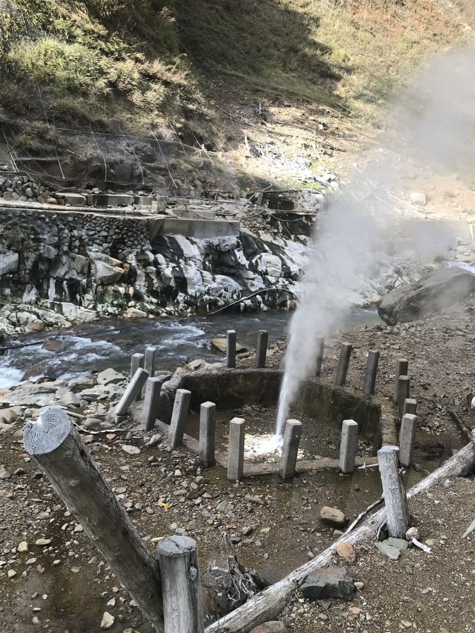 横湯川河床から吹き上げていて、この辺りの温泉の熱源だそうです。