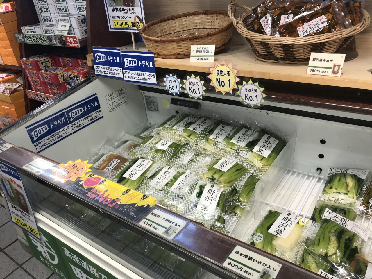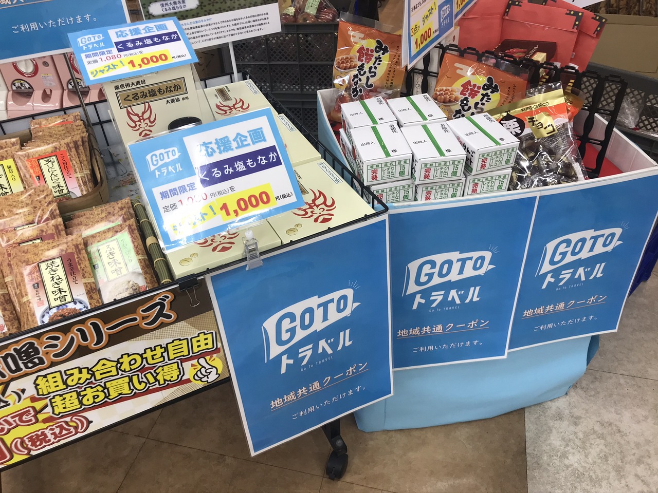 外の買い物棚にはGoToトラベル用の商品も並べられていました。