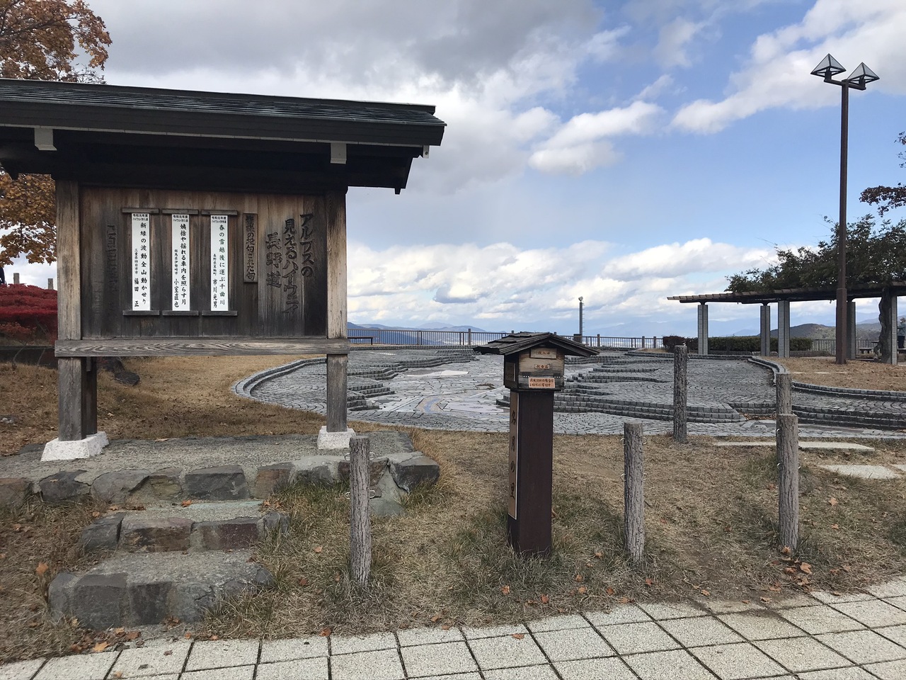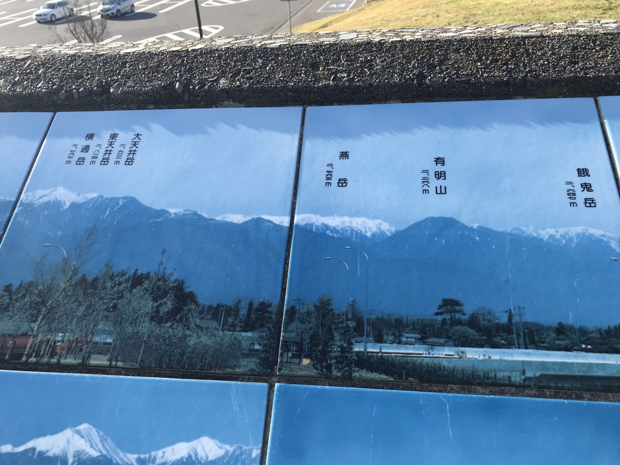 アルプスの家のような建物と北アルプスの山々を見れる展望台あり
