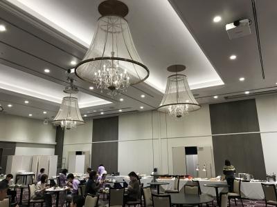 綺麗です・・コロナ禍の対策で朝食会場も広い・宴会場と思われる部屋で、テーブル間隔も広く、手袋を配布していて利用。