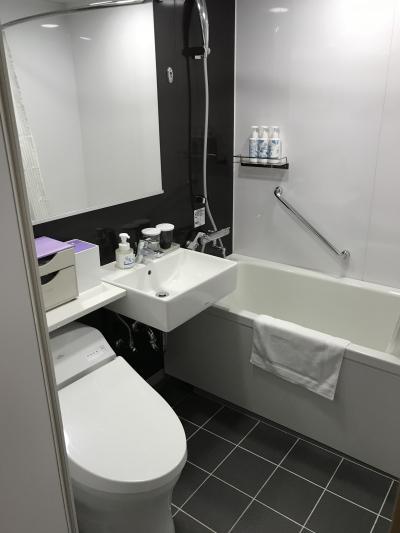 駅は隣、駐車場も無料・・綺麗なホテルで外食・館内とも便利です。