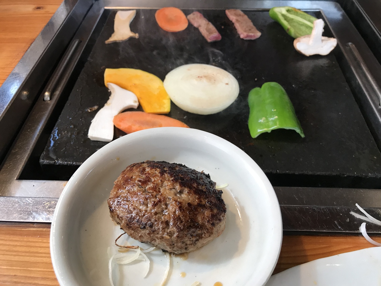 ただし、レディースには小さいですがハンバーグもあるというので、食べてみました。牛肉の味わいのあるハンバーグでした。