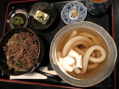 息子夫婦・孫は一本うどんと小どんぶりセットを食べました。