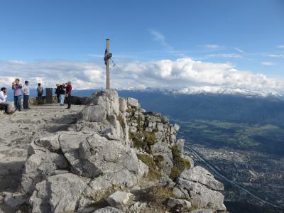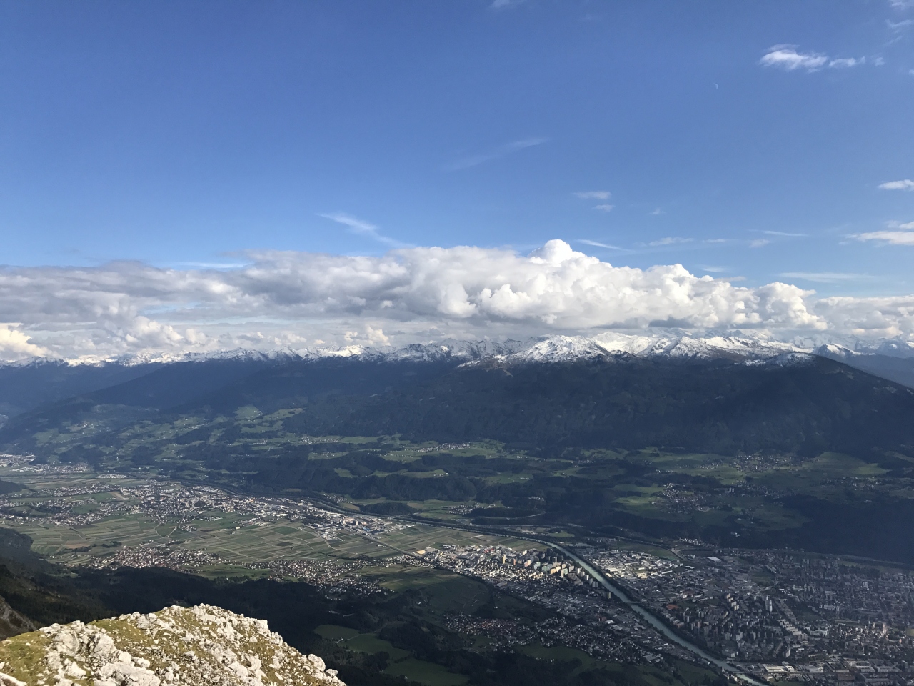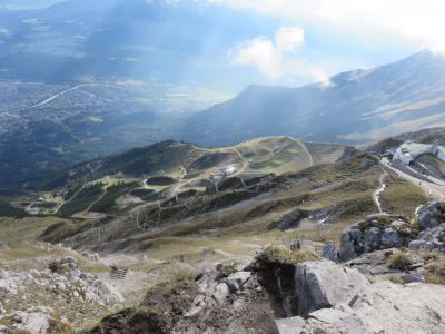 インスブルックの街からケーブルカーとロープウェイを乗り継いで、わずかな時間で2000メートルの山頂に立てる事が出来ました。
