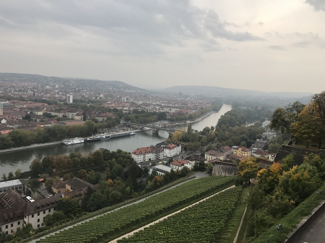 マイン川の左岸の丘の上にそびえる要塞ですが、窓・テラスから眺める風景はお勧めですよ。