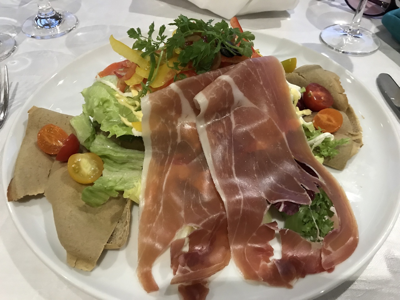 私は単品で大好きなプロシュート、シャケマリネ付きサラダ蕎麦ガレット。