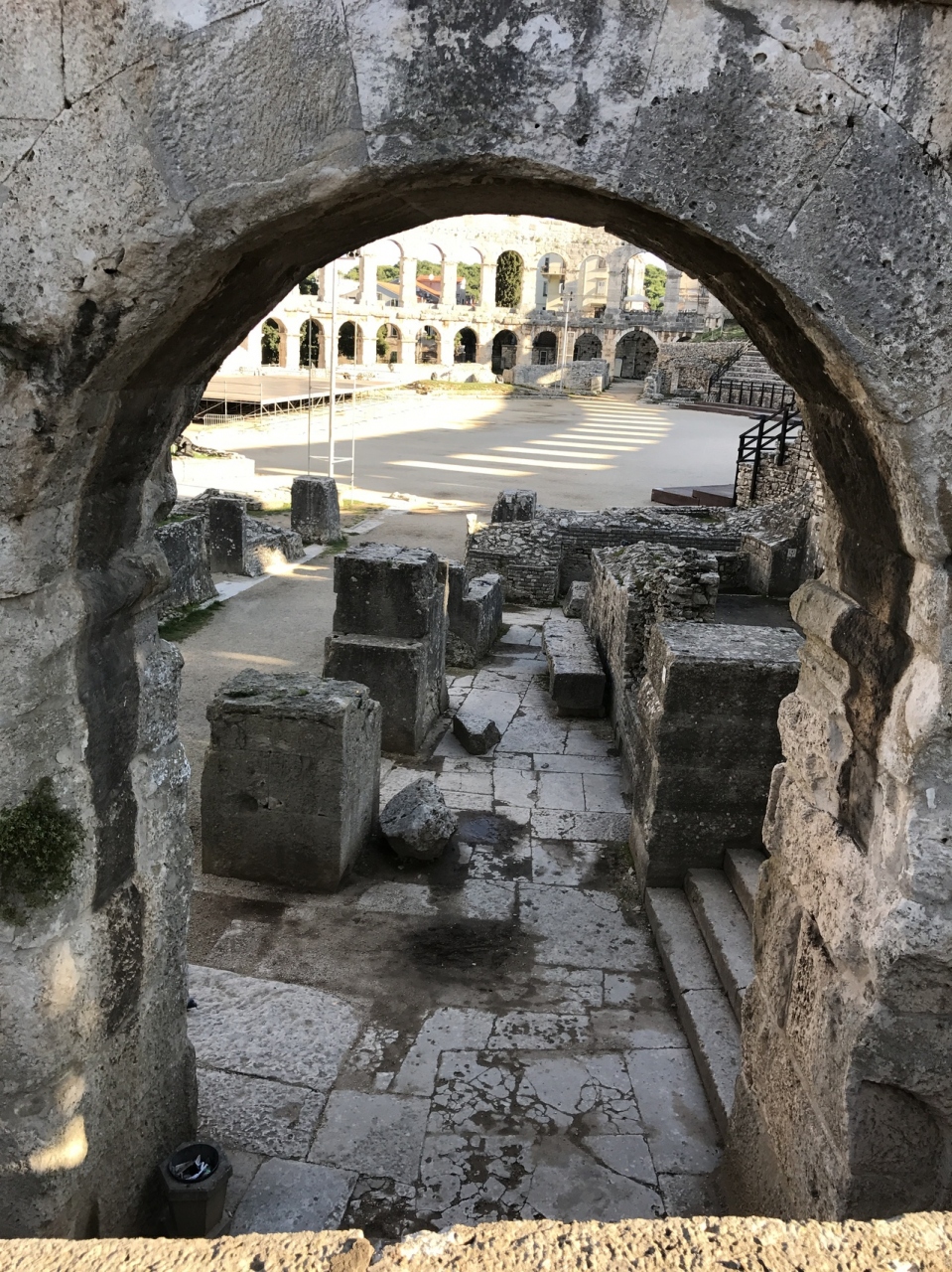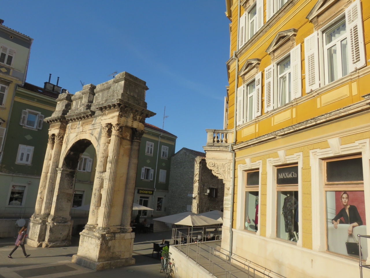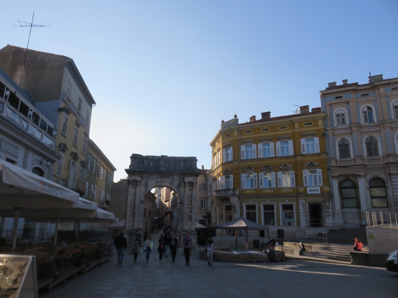 旧市街の入り口で、ここを起点にアウグストゥス神殿まで行き、港巡りをして円形劇場まで歩き、また、セルギ門まで戻るコースがお勧めです。