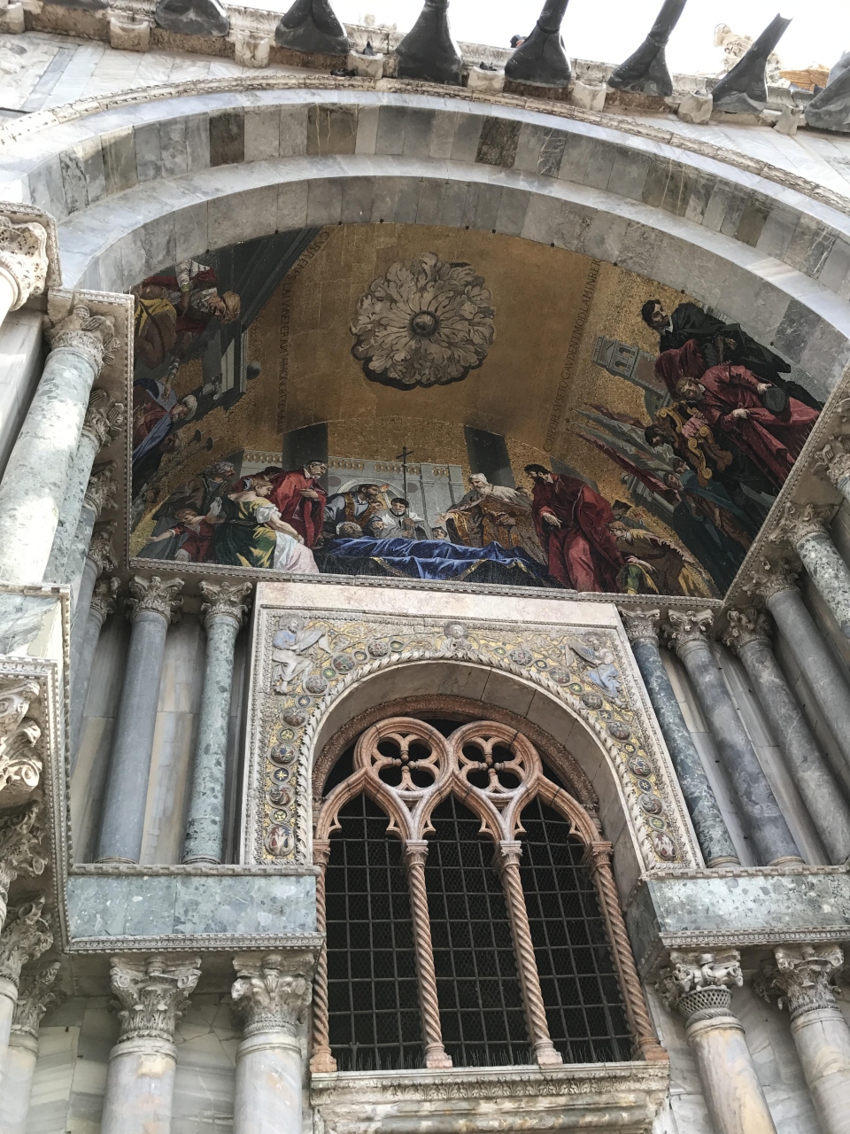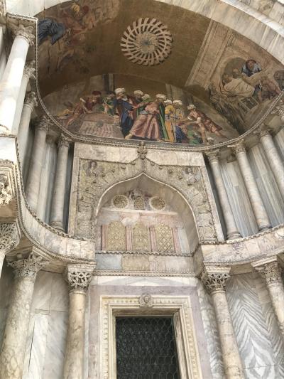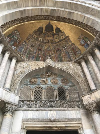 ファサード入り口のモザイク画はサンマルコの物語になっている。