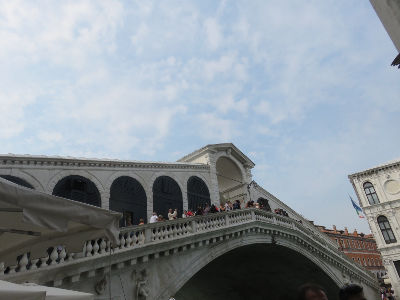 ヴァポレットに乗って通過するのも、歩いて散策途中にカナルグランデを渡るにしても、ハイライトはリアルト橋ではないでしょうか?