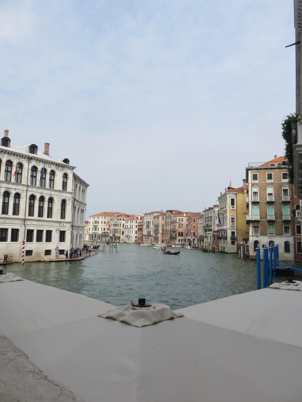 私は今回は歩いてリアルト橋を渡りましたので、上からカナル・グランデを眺めました。