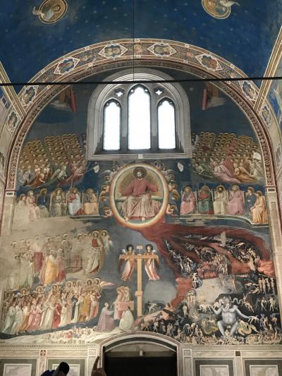 西壁に「最後の晩餐」左右の壁に「聖母の生涯」が12面「キリストの生涯」が25場面、東壁に「大天使ガブリエルを遣ます父なる神」そして、下の部分に「美徳と悪徳」の14擬人像が描かれています。