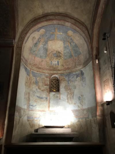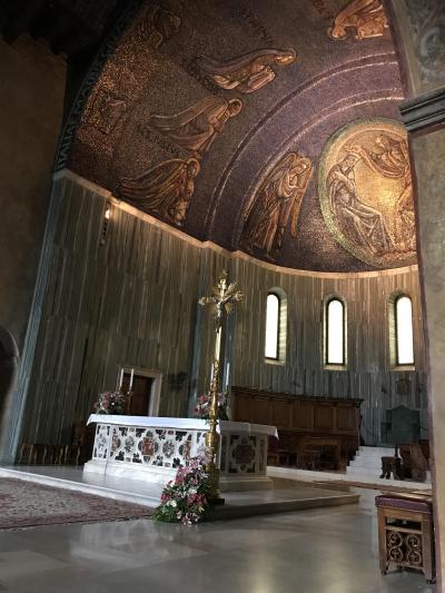 目的のビザンチン様式のモザイク画「聖母マリアと大天使ミカエルとガブリエル」と「キリストと聖ジュストと聖セルヴォロ」は必見です。
