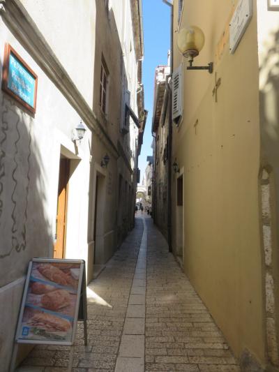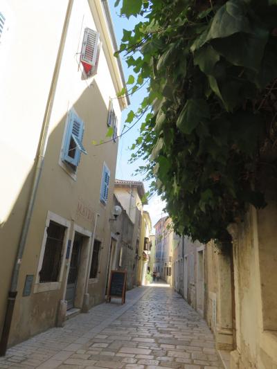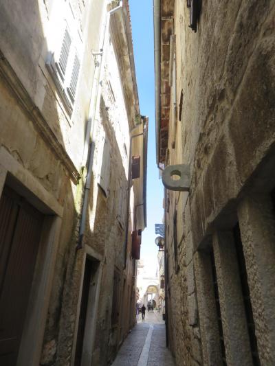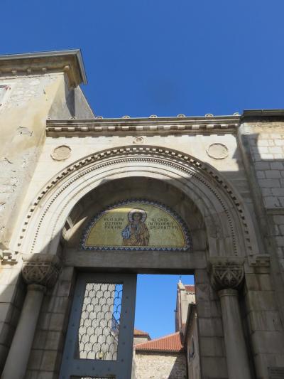 目的のエウフランシウス聖堂の鐘楼からも、アドリア海の青さの景色もお勧めですが、城壁の周りの遊歩道を歩いて、港にでますと目の前に真っ青な海が望めますので、散策をお勧め致します。