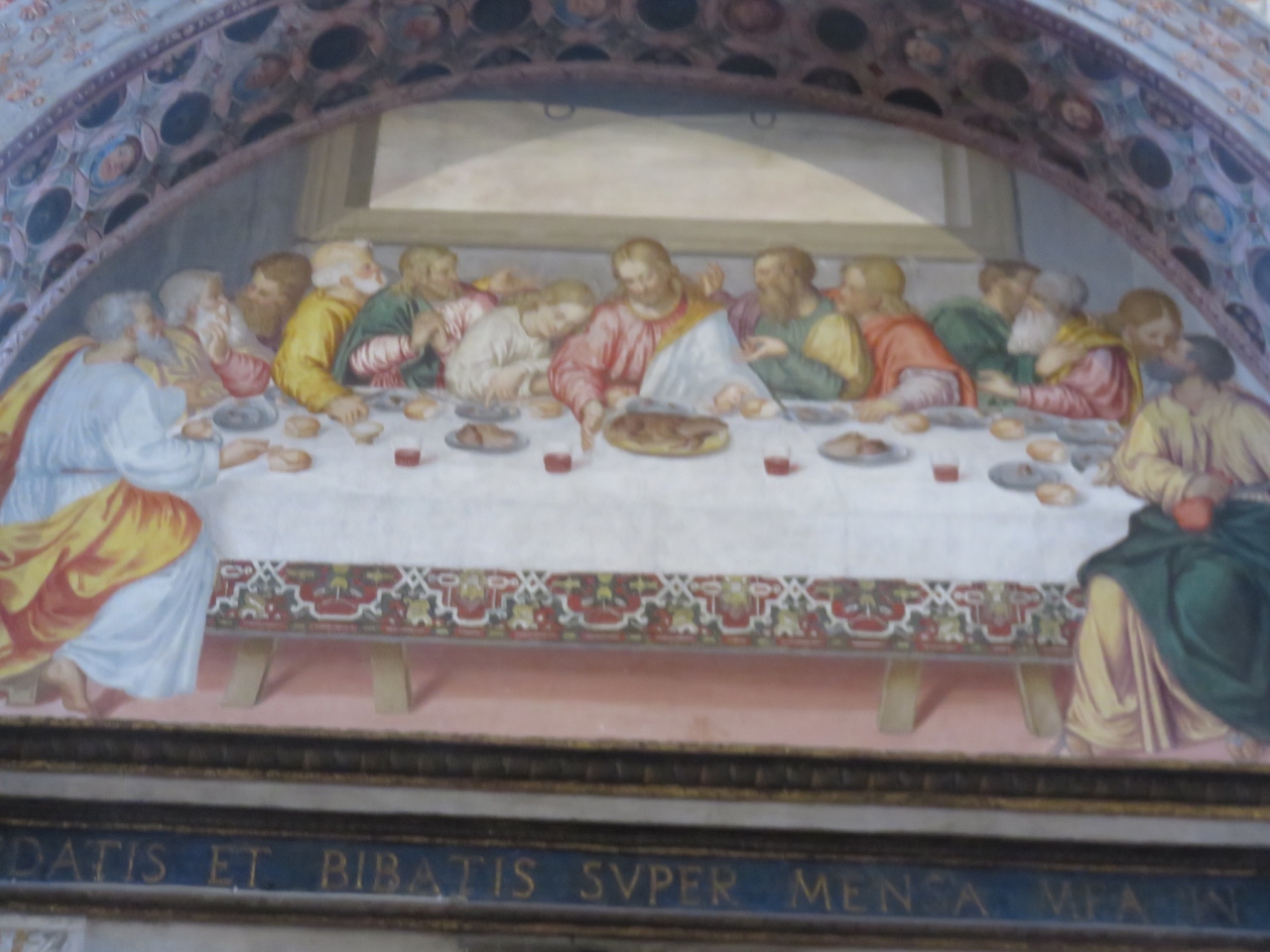 あと、最後の晩餐を参考に描かれたというフレスコ画も必見です。