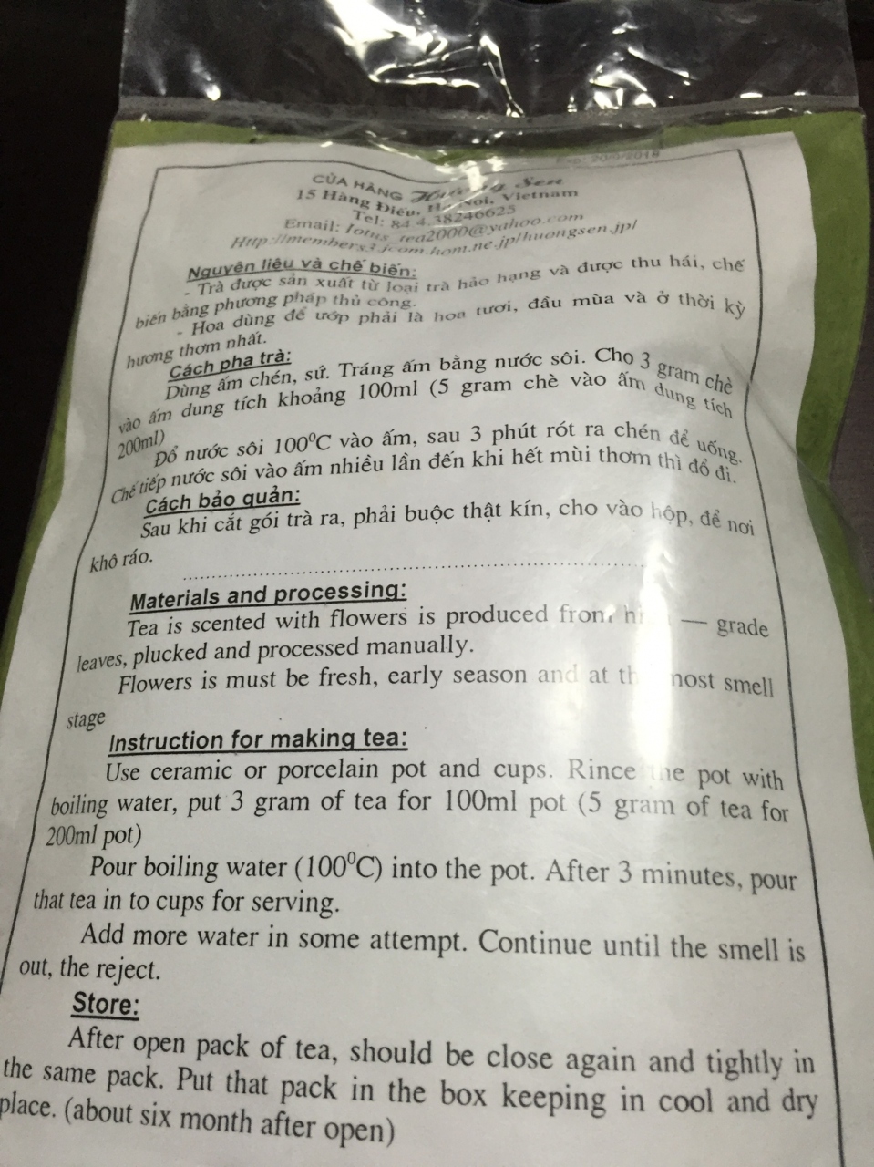 ハス茶230000ドン・100g・ジャスミン130000・100gとなっています。