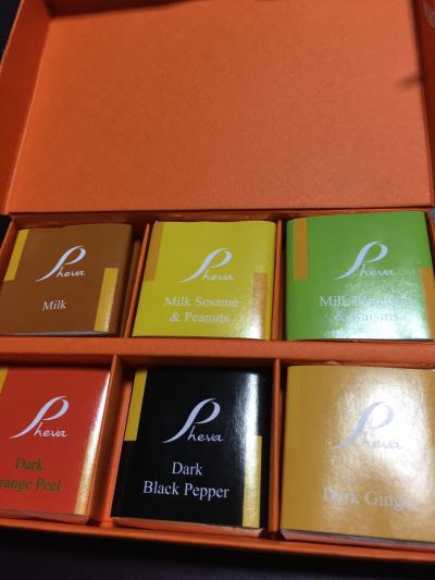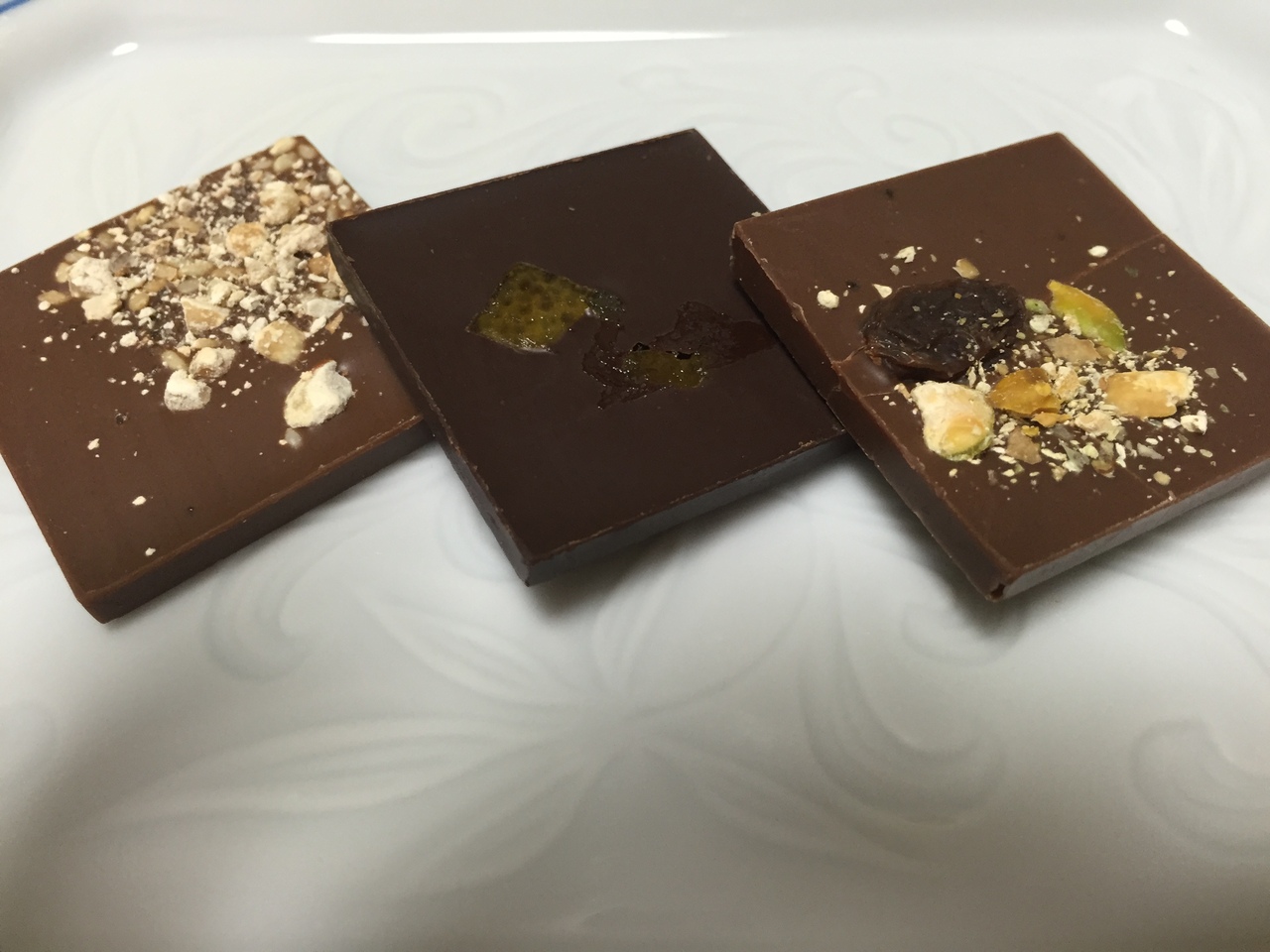 6オレンジのダークチョコとオレンジ・2のダークチョコと黒コショウ・5マスタードはダークチョコと生姜。