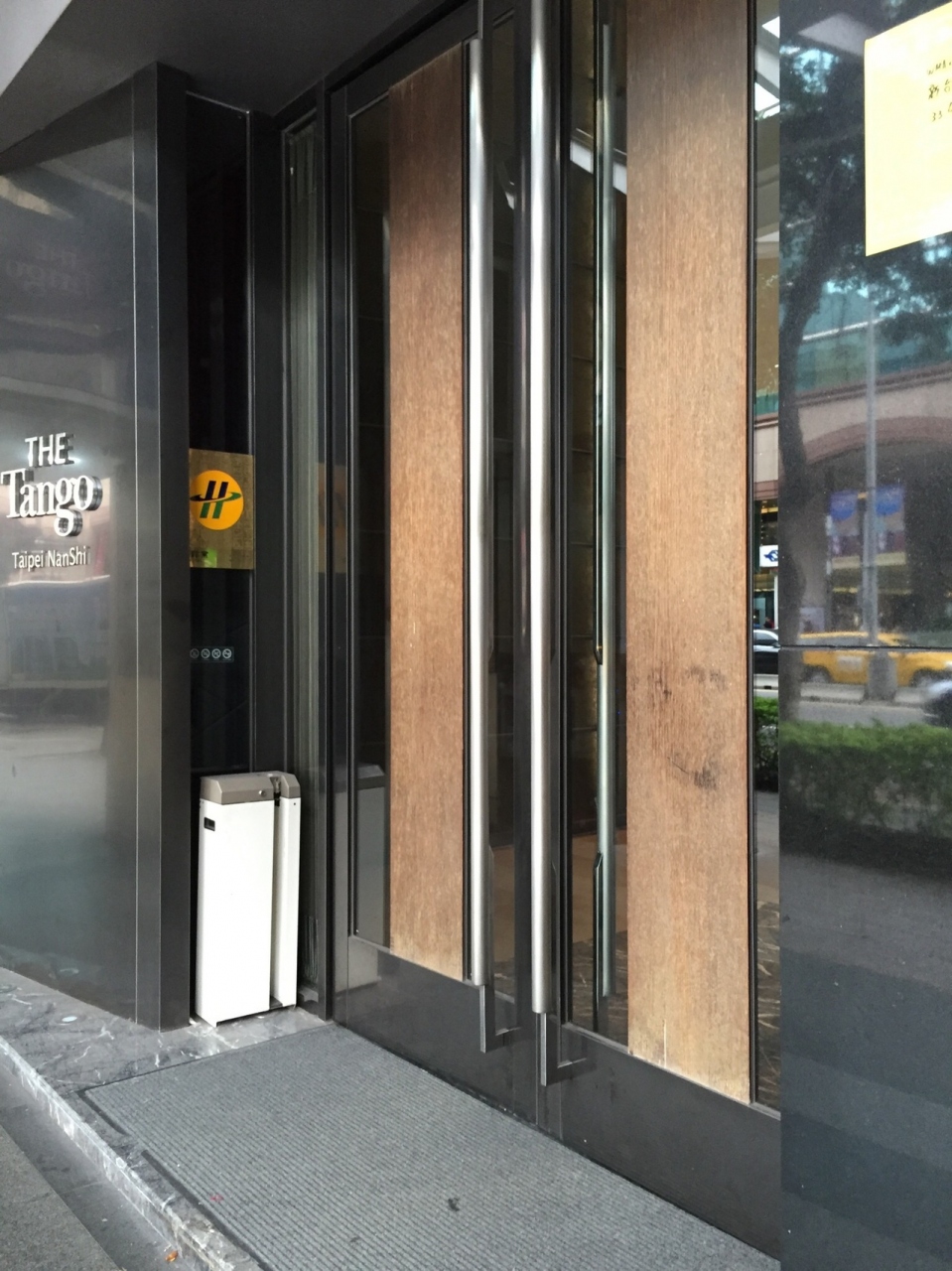 入口は2か所あって、男性の仕立て屋さんに貸しているのかな?と思われる入口と、フロントデスクがある入口があります。通常はフロントの方を出入りします。