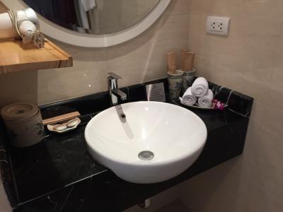 **部屋の洗面台の水道の蛇口がオシャレすぎて、不都合なことに水を出しすぎると床にこぼれる。お気をつけて下さい。