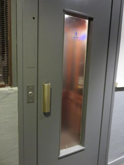 エレベーターも昔風でレトロ感があり、狭いです。