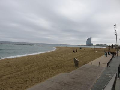 カタルーニャ音楽堂から、ポルト・ベイ方向に、椰子の木の散策道を歩きました。