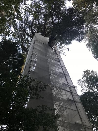 「秩父杉」令和5年1月28日まで樹木治療と養生中ですと記載されていて、保護シートで囲われていました。