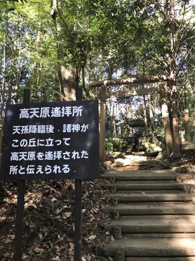 「高千穂宮」と記された立派な大鳥居を潜ると、参道が伸びていて、さらに進んで行くと「高千穂神社」の石碑がありました。