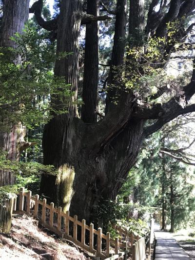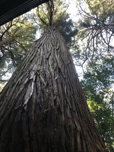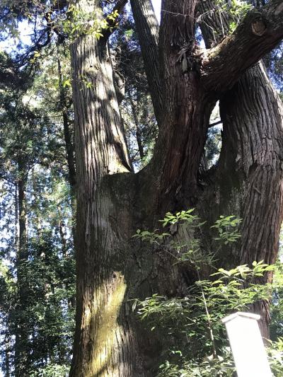 のんびりと境内を散策しながら歩いたのですが、途中から「くしふる神社」と同じように、パワーあふれる木々が並び、最後に「五百枝杉」と命名された、物凄い太くて大きな杉の木に出会えました。