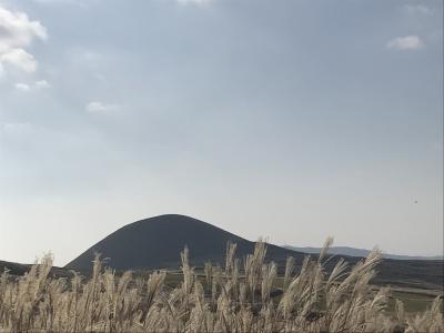 阿蘇・中岳は火口までいく有料道路が封鎖中だったので、それ程長い時間の滞在では無かったので、景色を見ながらドライブしていましたら、前方に可愛いお椀型(?)の単体の小山が見えました。