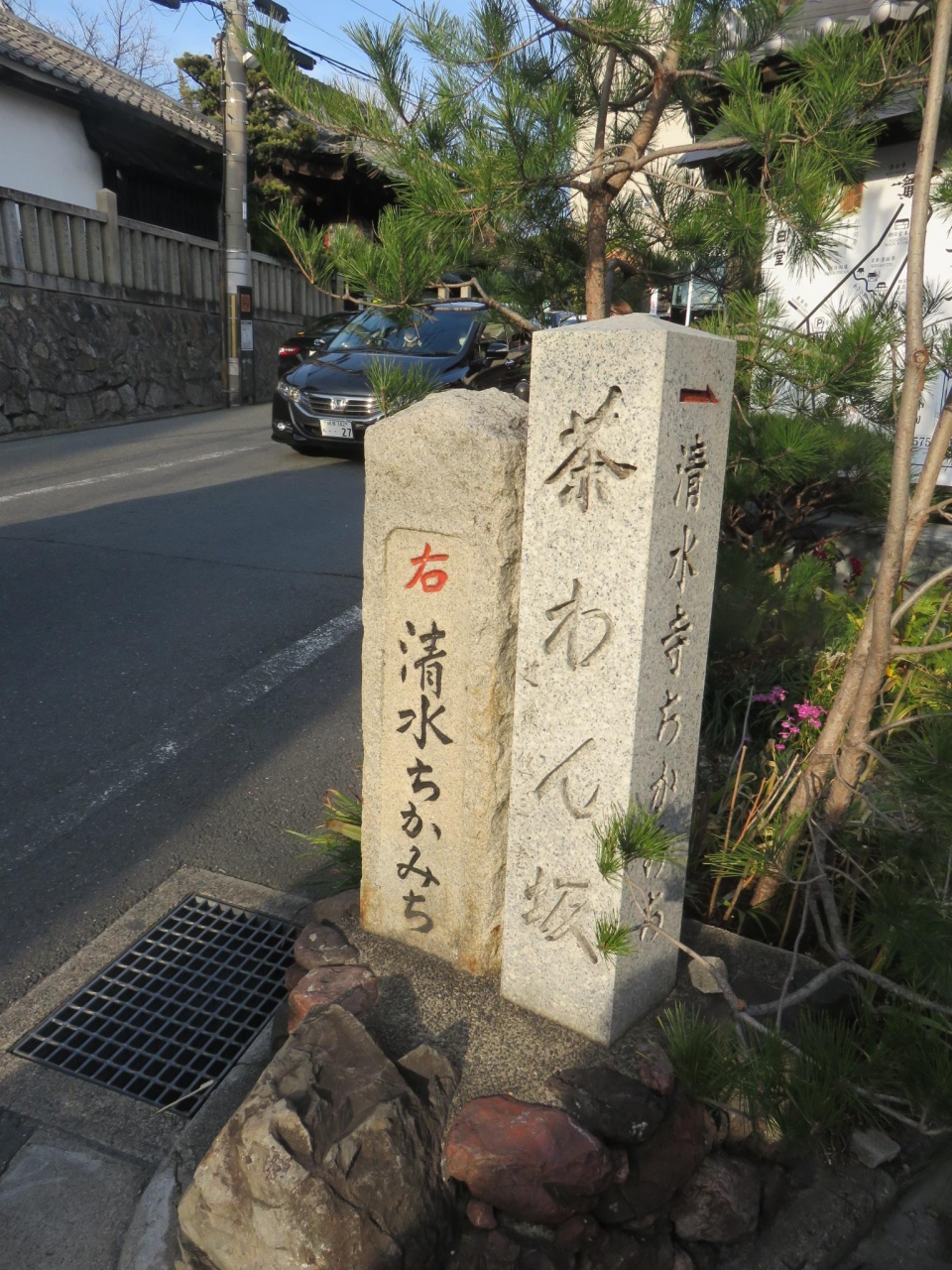 東山五条の交差点を上がって行きますと、五条坂(観光バスの通るので排気ガスが凄い)と茶わん坂の分岐点に着きますので右の坂道を上がる(通称・茶わん坂)