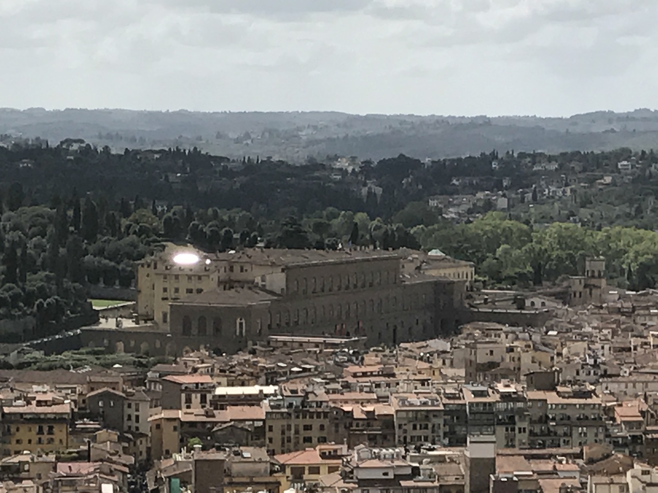 観光客でにぎわうヴェッキオ橋を渡って、少し坂道を上がって行きますとド~ンと目に入ってまいります。