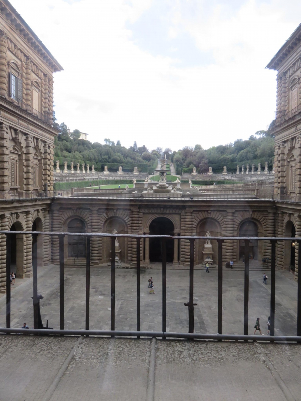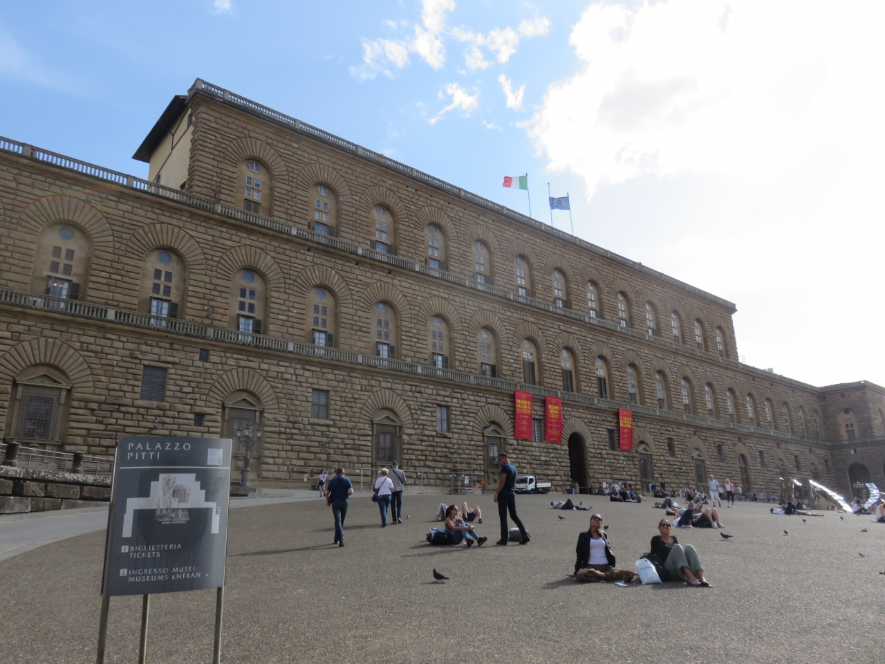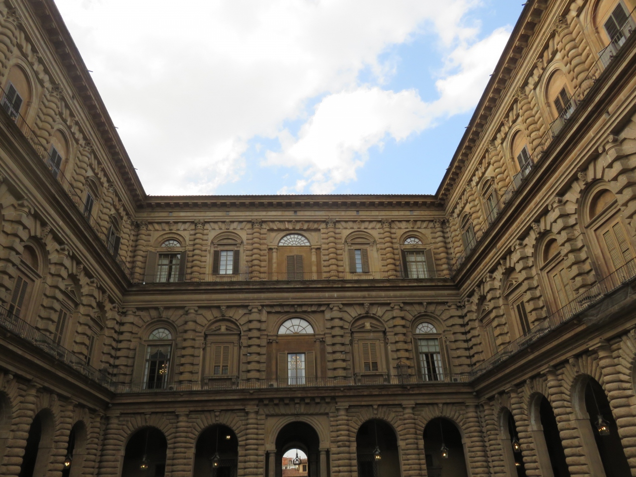 フィレンツェでも指折りな商人・ピッティの私邸で、コジモ1世の妃エレオノーラが買い取ったとされていて、歴代のトスカーナ大公が住まわれた宮殿だった建物。