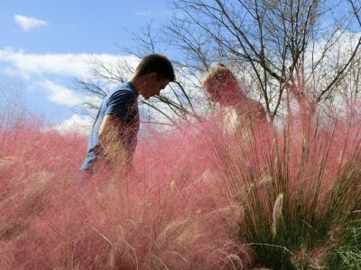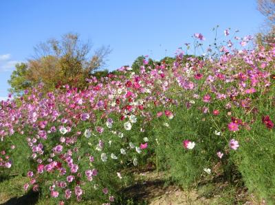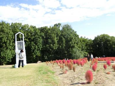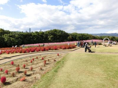 - 晴れたり、曇ったりの空の下、大阪万博記念公園 自然文化園・花の丘で「コスモス&コキア&ミューレンベルギア」を楽しむ。(2025)
