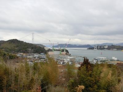 「来島海峡第三大橋」周辺の景色をズームで撮ってみました。「造船所のクレ...